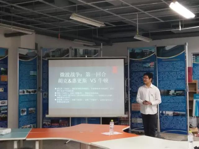 杨博文同学借助ppt展示了异彩斑斓的光现象,并由此引入人类对光的研究。追溯历史,博文同学讲述了关于光的起源的神话传说,此后介绍牛顿,普朗克等物理学巨人,生动地再现了当初物理学界波动说与粒子说的激烈争辩,并以这一对阵为线索,从两次“学说大战”普及物理学的进程。将视线由经典力学引入量子力学,直至狭义相对论,篇章浩渺。博文同学口才出众,抑扬顿挫,展现出了年轻一代动力学人的飒爽英姿。
