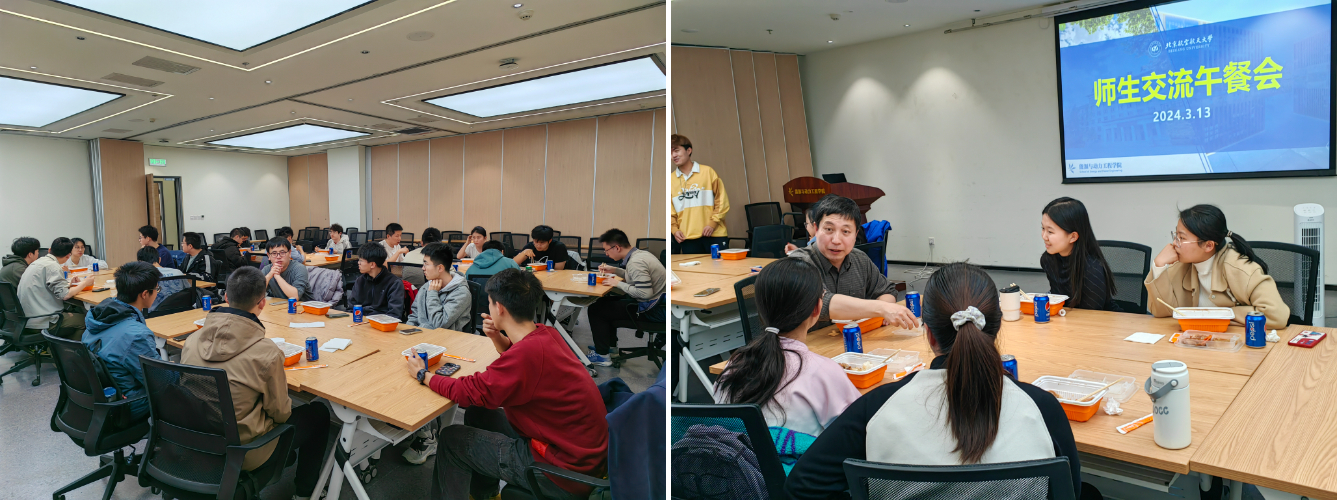为加深大一学生对动力学院的认识,并增强学生对专业的了解,动力学院于3月13日在沙河校区F703-1举办了2023级大类招生首场师生午餐会。学院教师代表齐红宇、张启成、林鹏、范永升、刘长奇等与30名航空航天大类书院学生共进午餐,围绕学院情况、专业介绍、科技实践、个人发展等话题深入开展交流。